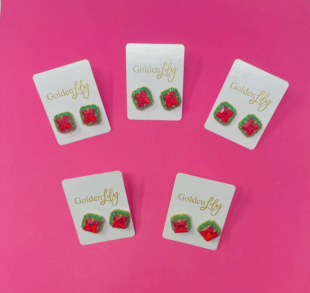 Golden Lily - Christmas Rhinestone Stud Earrings