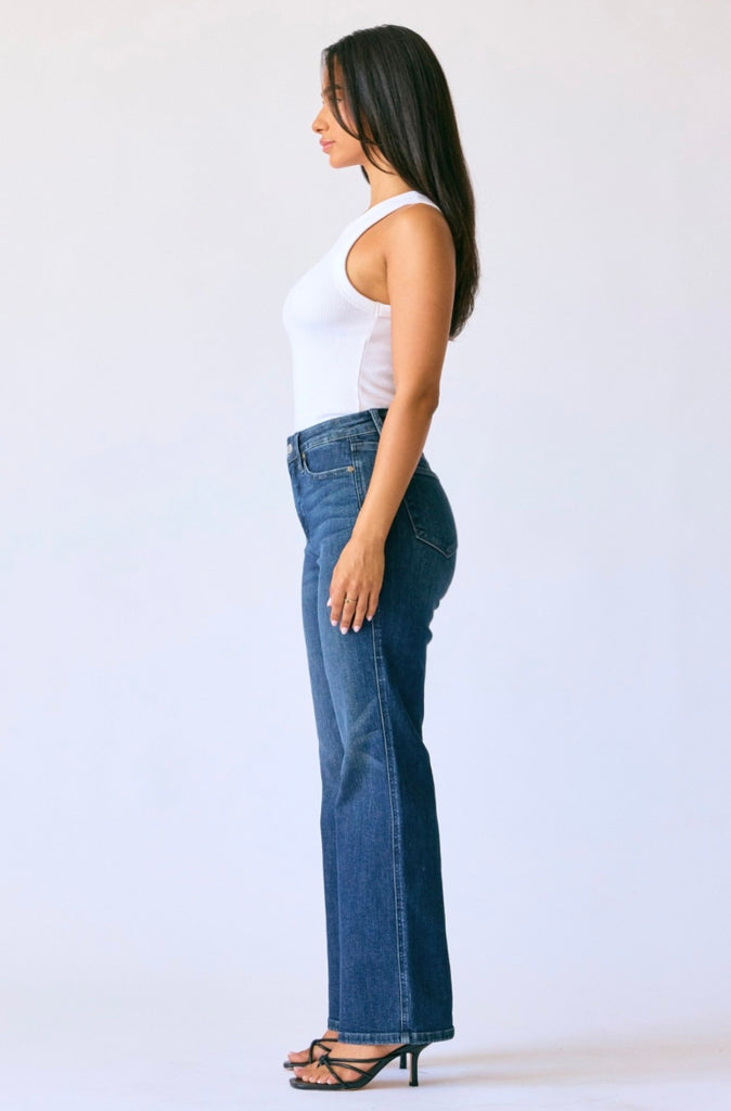 Judy Blue's Lydia mid-rise straight leg denim combines timeless style with modern comfort. Crafted in a flattering dark wash, this petite-fit design features built-in tummy control technology that smooths and supports your silhouette. The classic straight leg cut offers versatile styling for any occasion, while the mid-rise waistband sits perfectly at the hip. Durable denim construction ensures lasting wear and shape retention. An essential wardrobe staple that delivers both confidence and sophistication.