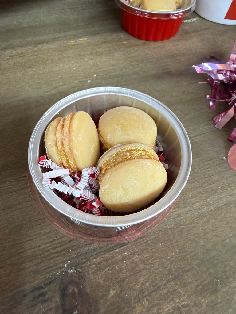 Get your senses tingling with our Smelly Goodness Macaron Wax Melts! The almond scent of these non-edible wax melts will transport you to a cake shop filled with delicious desserts. And don't forget the unique twist - a gold painted center for an extra touch of luxury. Treat yourself without the calories!