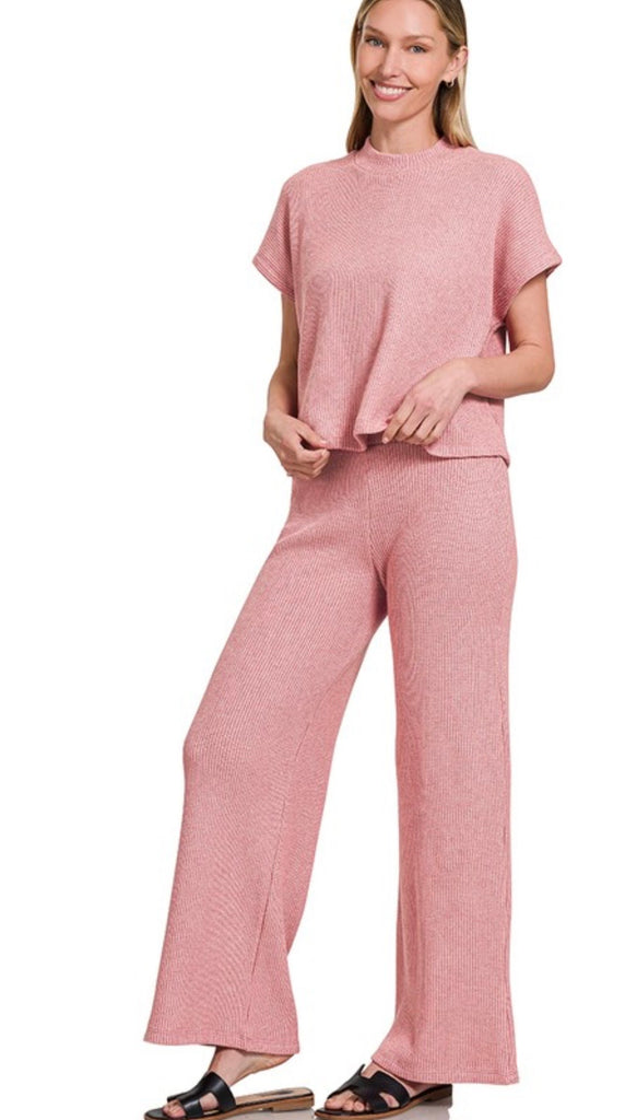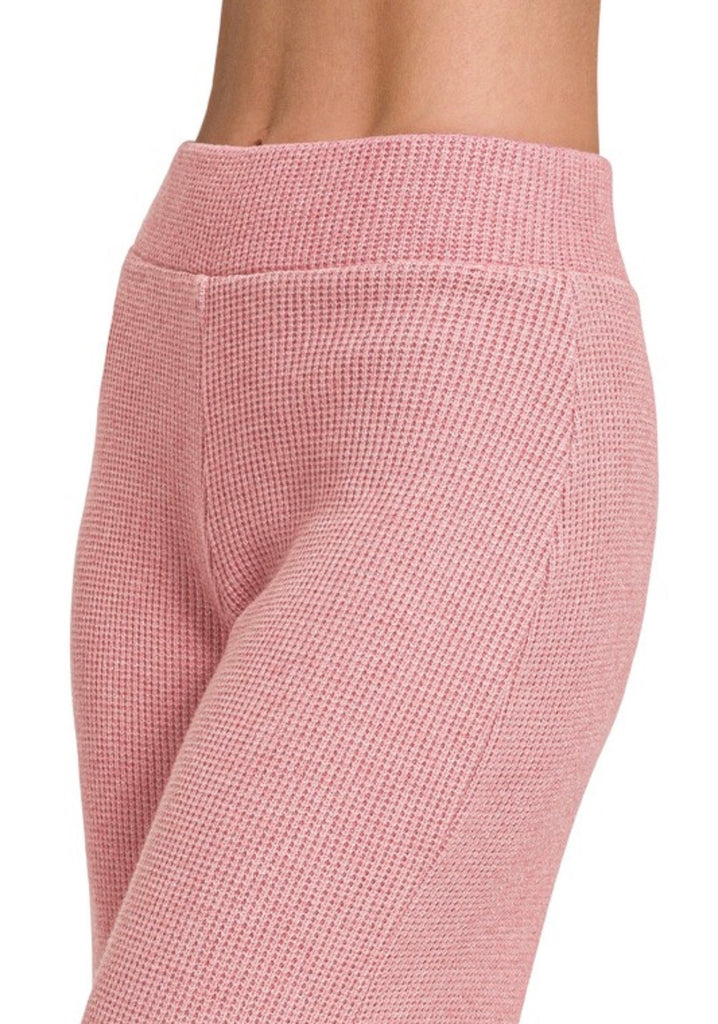 Elevate your loungewear collection with this refined waffle-knit set, featuring a soft, textured top and matching pants crafted for ultimate comfort. The lightweight fabric drapes beautifully while maintaining its shape, making each piece versatile enough to wear together as a coordinated ensemble or styled separately with your existing wardrobe. Perfect for relaxed evenings at home or casual outings, this set combines understated elegance with everyday wearability.
